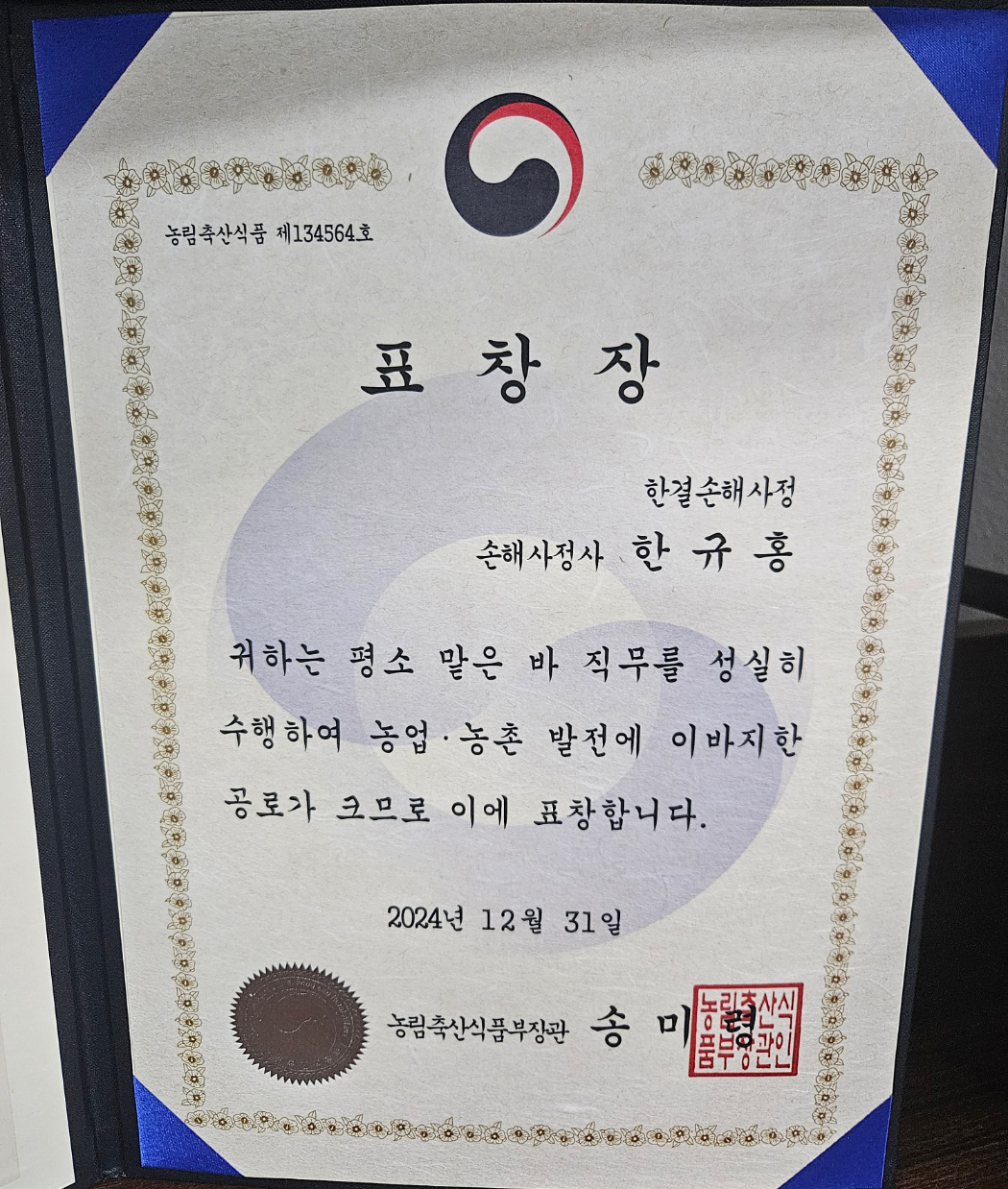 한결손해사정은 금융감독원 정식 등록 손해사정사입니다.