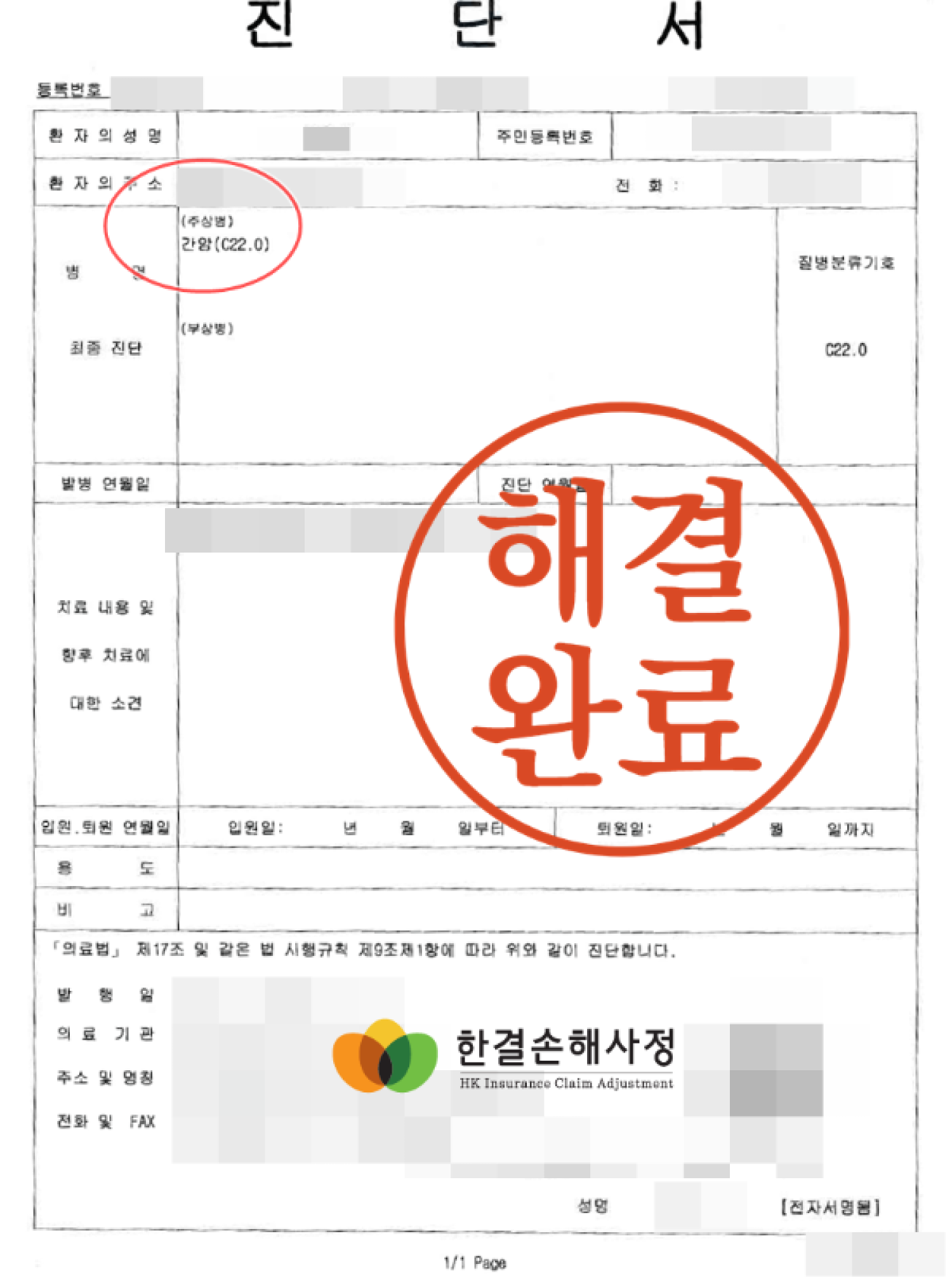 고지의무 적용 대상이 아닌 치료이력임을 입증하여 간암 보험금 지급 문제를 해결한 사례입니다.