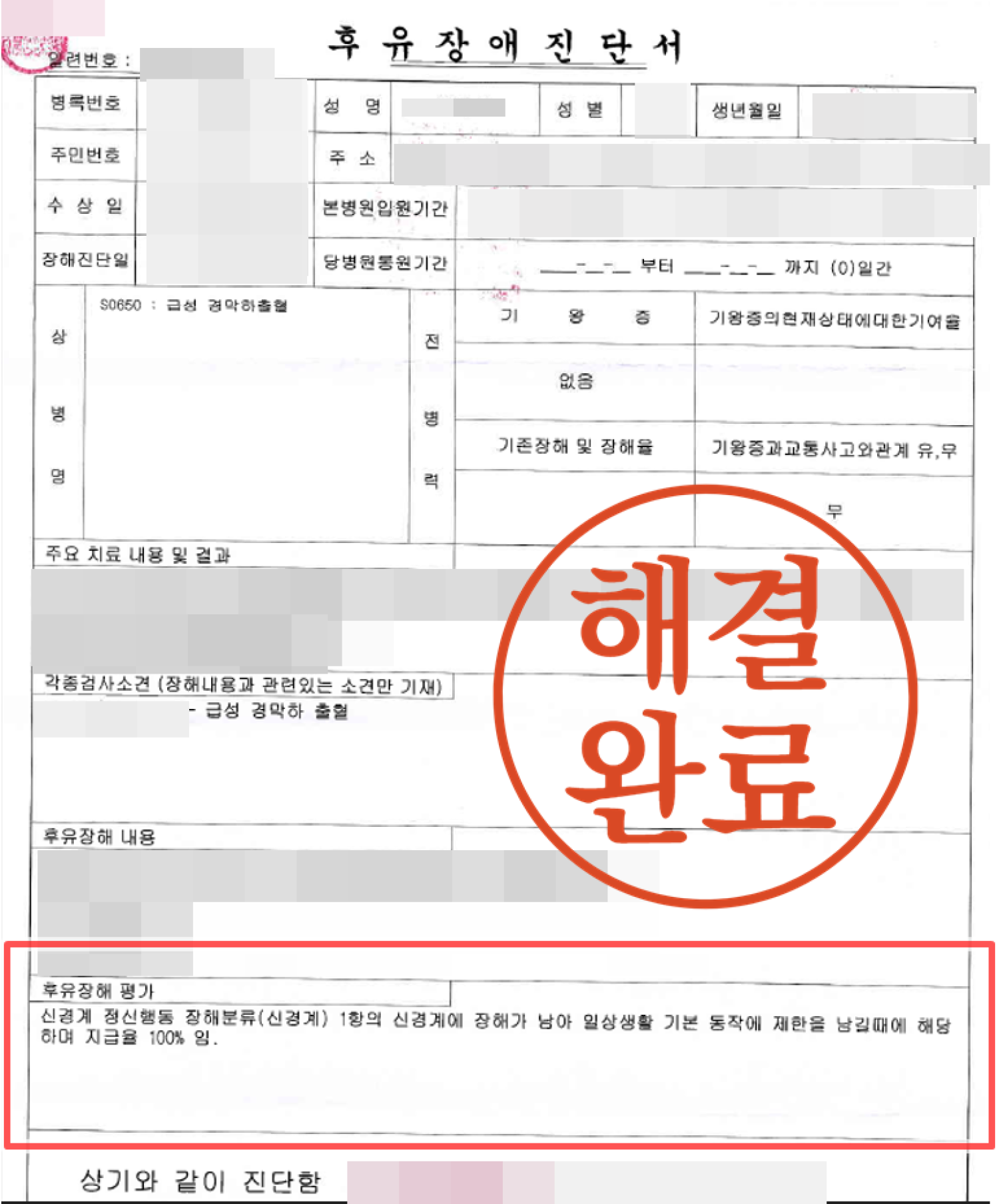 장해심사의 기본이 되는 장해진단서도 보험회사에서 이견을 걸 수 없을 정도로 완벽하게 받아야 합니다.