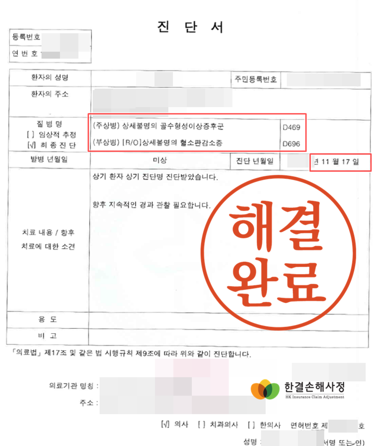 보험 해지 이전의 진단 확정이라는 사실 관계를 입증하여 보상 처리 완료한 사례입니다.