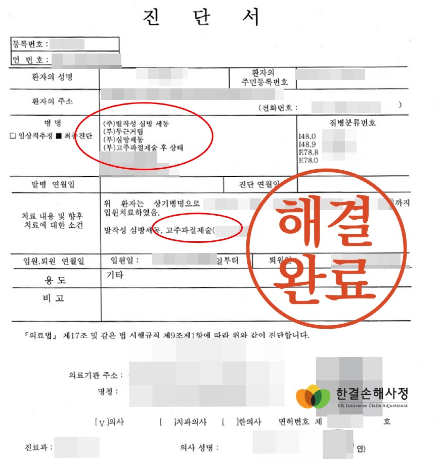 보험 약관에서 정한 수술의 정의에 해당함을 구체적인 근거와 함께 입증하여 문제를 풀어낸 사례입니다.