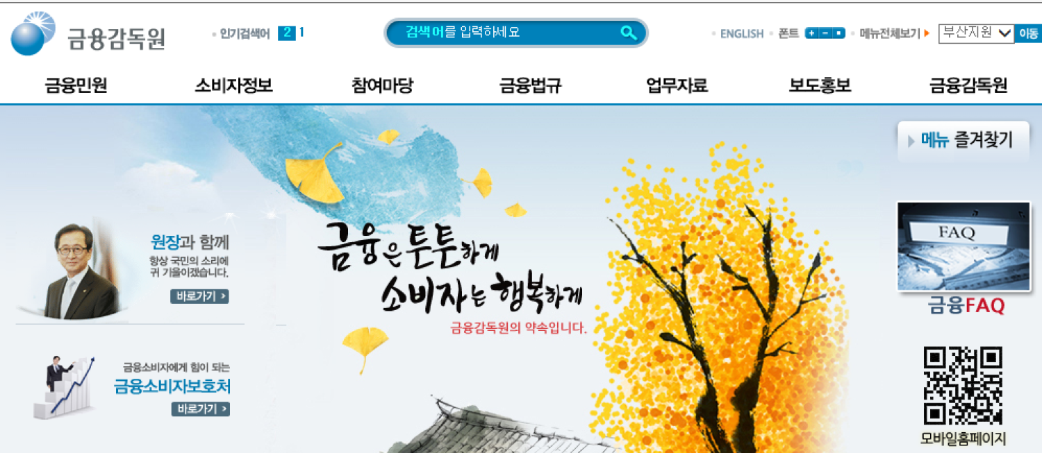 금융감독원의 홈페이지입니다.