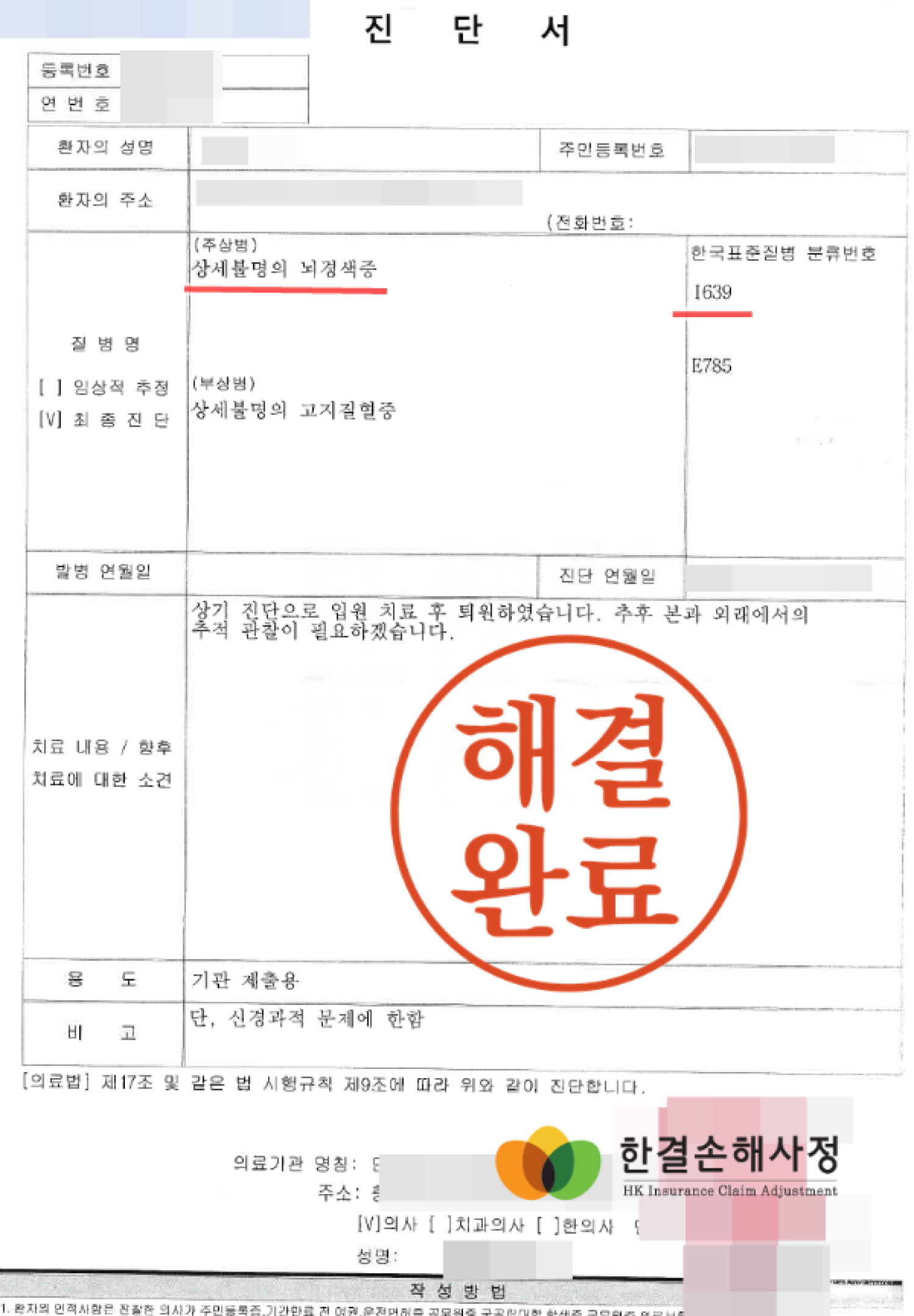 또한 의사의 주관적 생각이 담긴 진단서만 보고 처리하는 것이 아닌 뇌경색 진단을 인정할