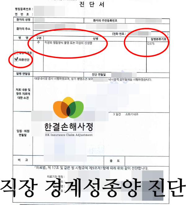 이번 사례는 보험에서 경계성 분류표에 들어가는 D37.5 진단을 받았으나