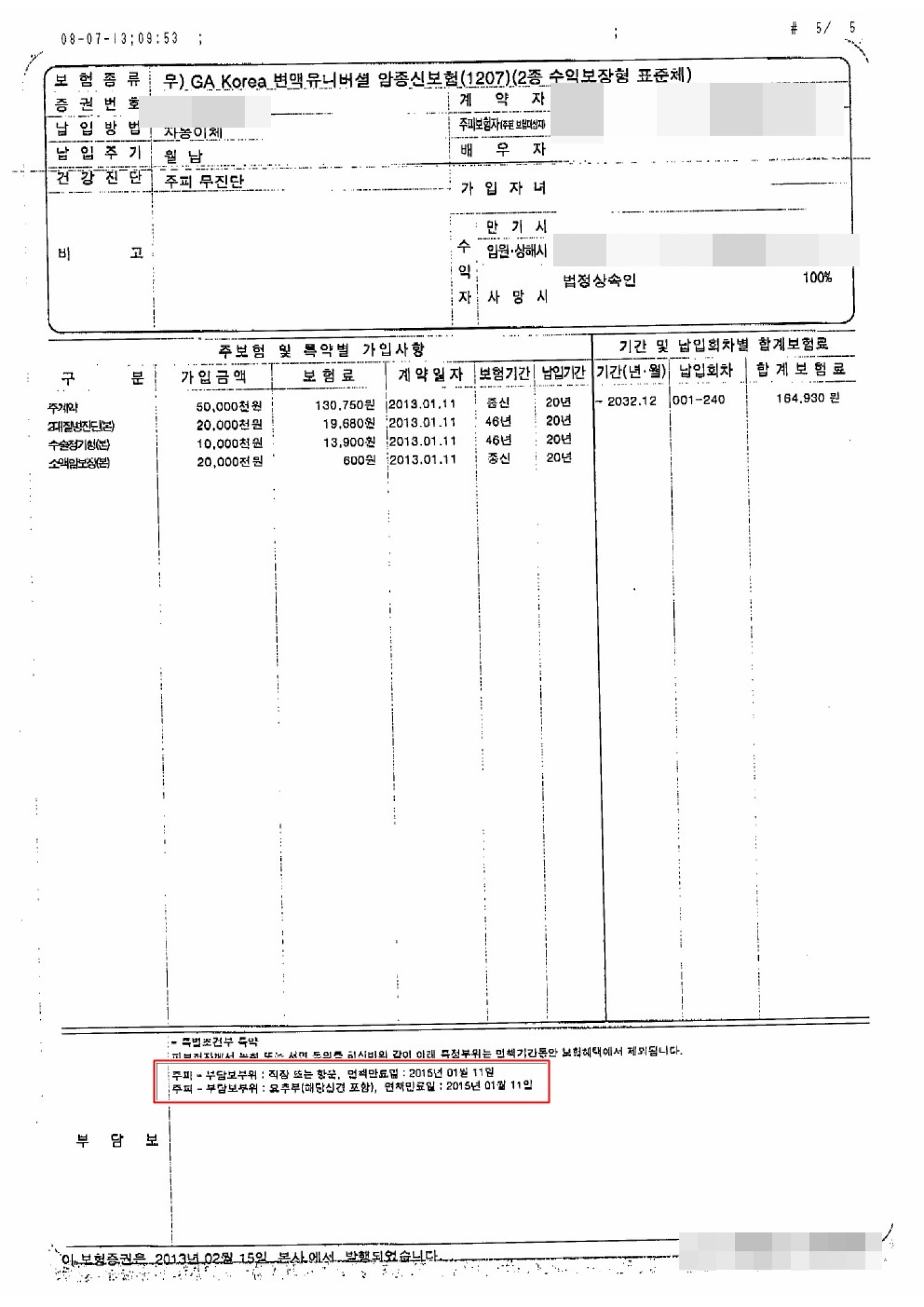 부담보 5년의 경우