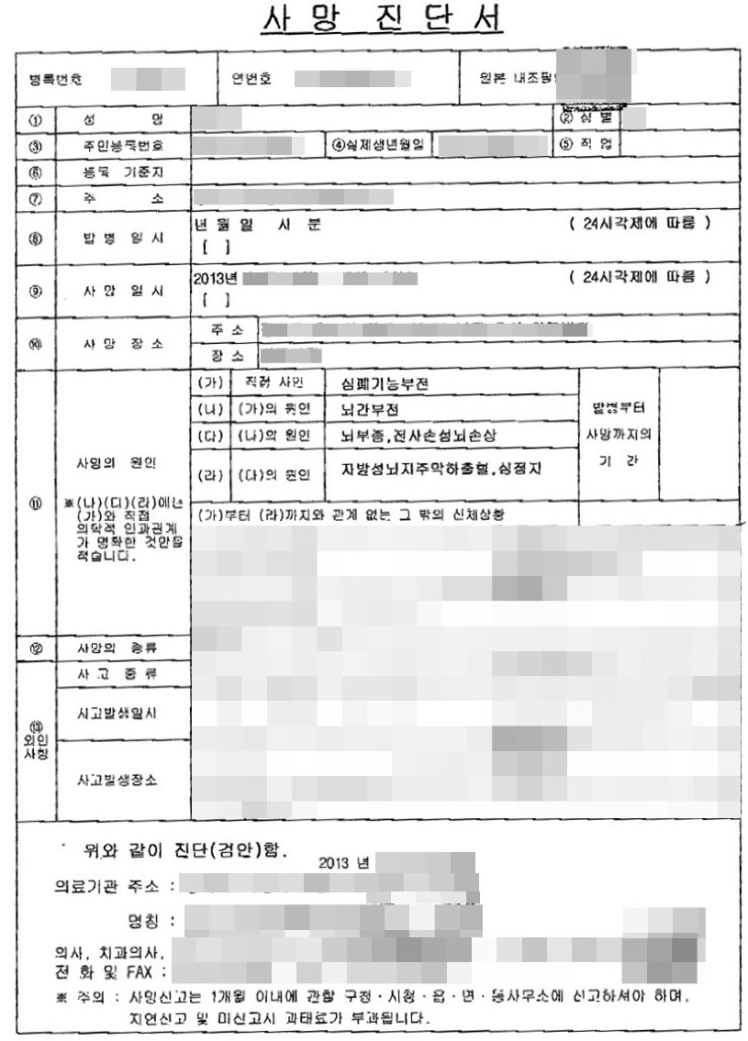 진단서상의 지주막하 출혈이 사망의 선행사인이고 가입전 치료인 고혈압이 지주막하 출혈의 원인이라고 합니다.