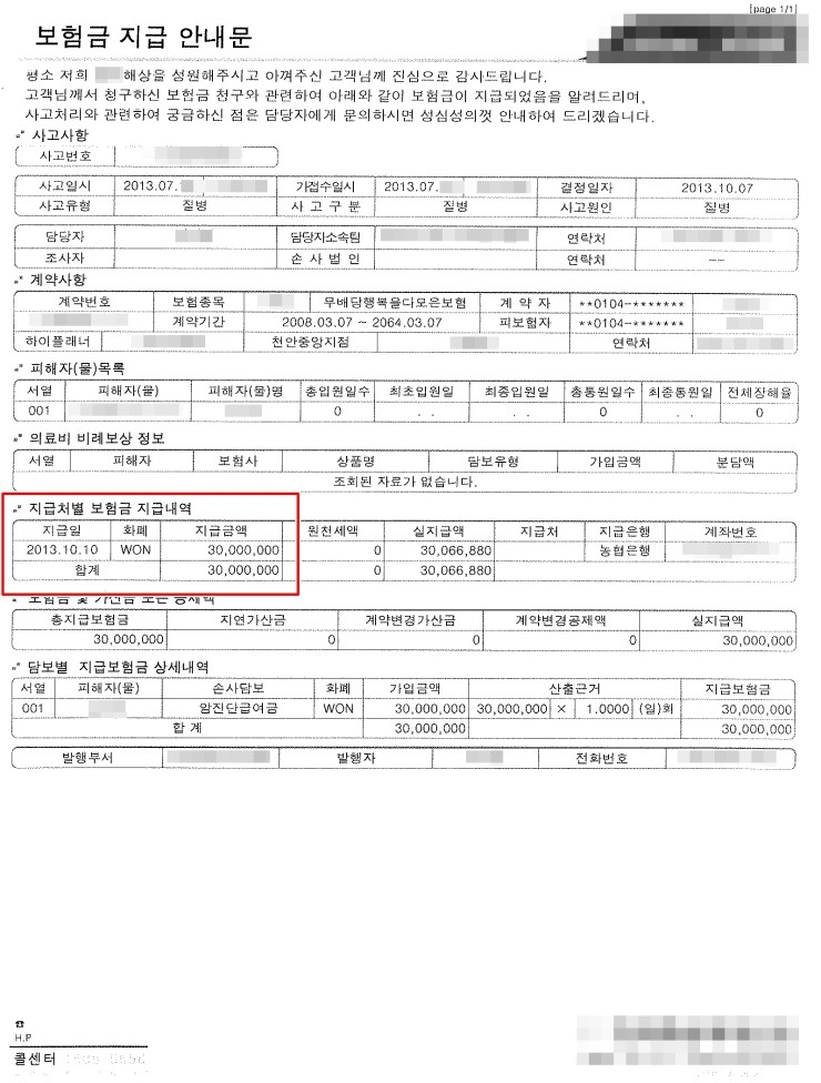 물론 당사와 피보험자 OOO님과의 신뢰를 바탕으로 원활한 소통이 이루어졌던것이 주요했지만, 무엇보다 보험회사에 서류 접수 전, 즉 보험청구전 당사와의 무료상담 후 손해사정보고서와 함께 접수를 했던 것이 성과의 주 원인 이었습니다.