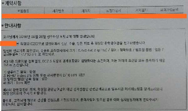 보험약관에서 암에 속하는 코드이기에 별다른 의심없이 보험금을 청구하였으나