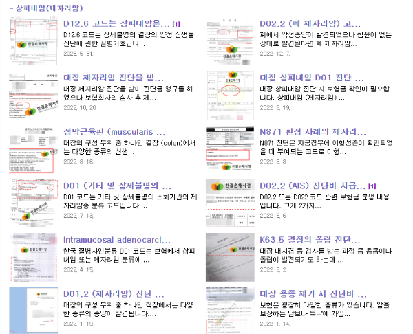 보험금은 일반암, 소액암 등으로 처리된 사례들입니다.